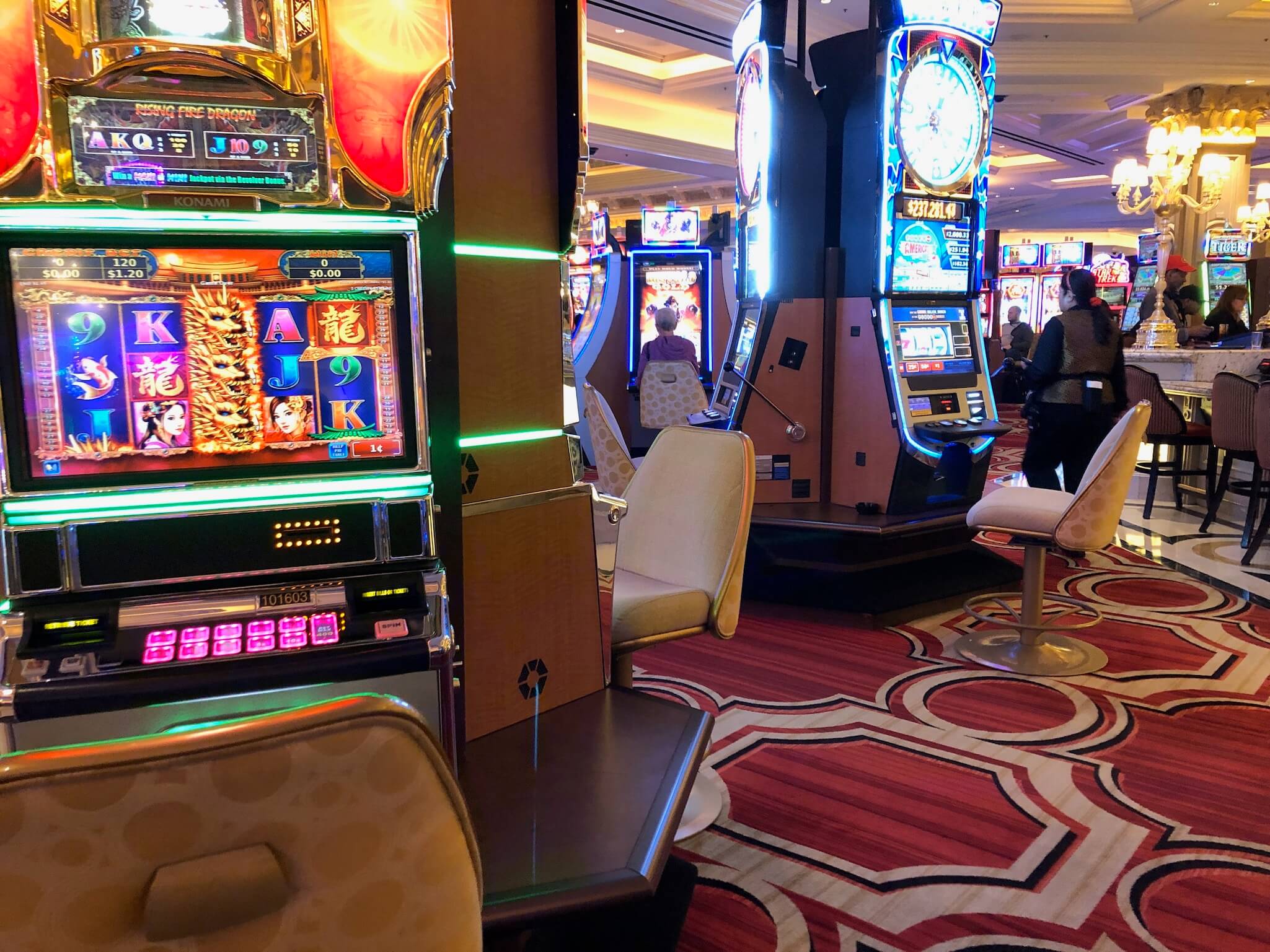 ホテル内にもカジノがあり、そこかしこにスロットマシンが置いてあります。みんなやっていますが才能が無いのを知っているので素通りして街に出ます。夕食はアメリカでもピザです。