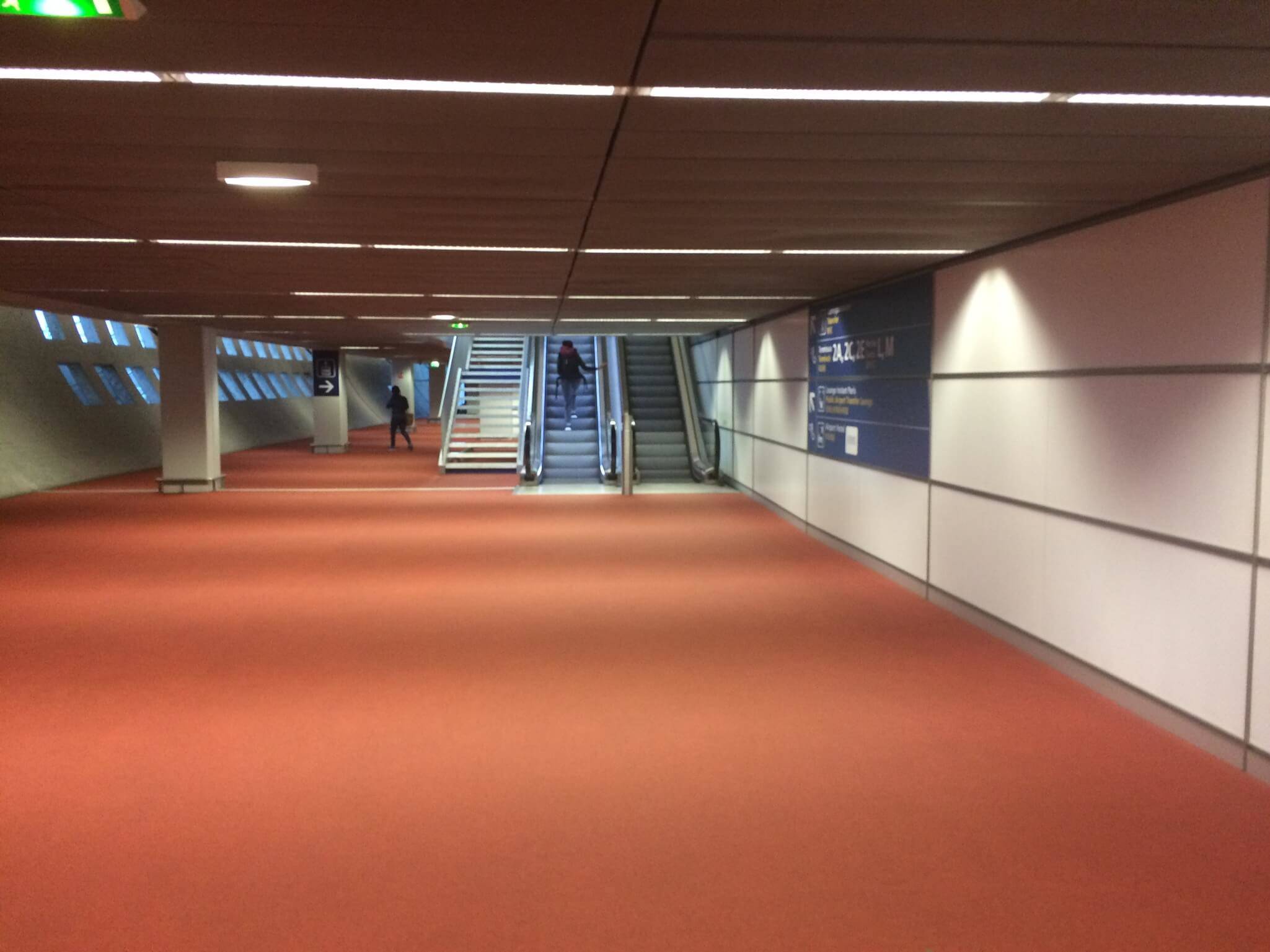 少し行くと上の階へのエスカレータと階段があります。その先にイミグレーションがありここでEUから出域します。