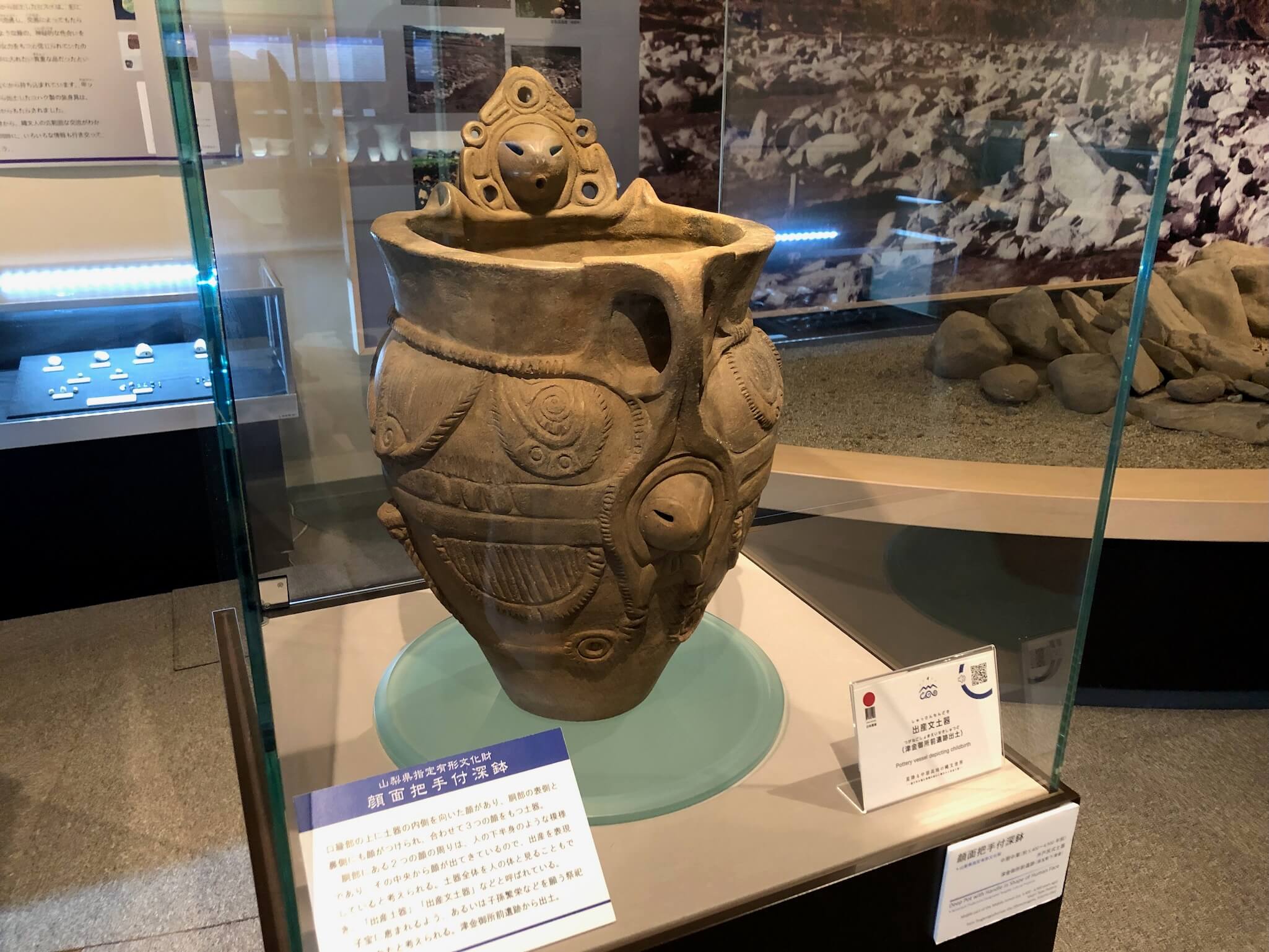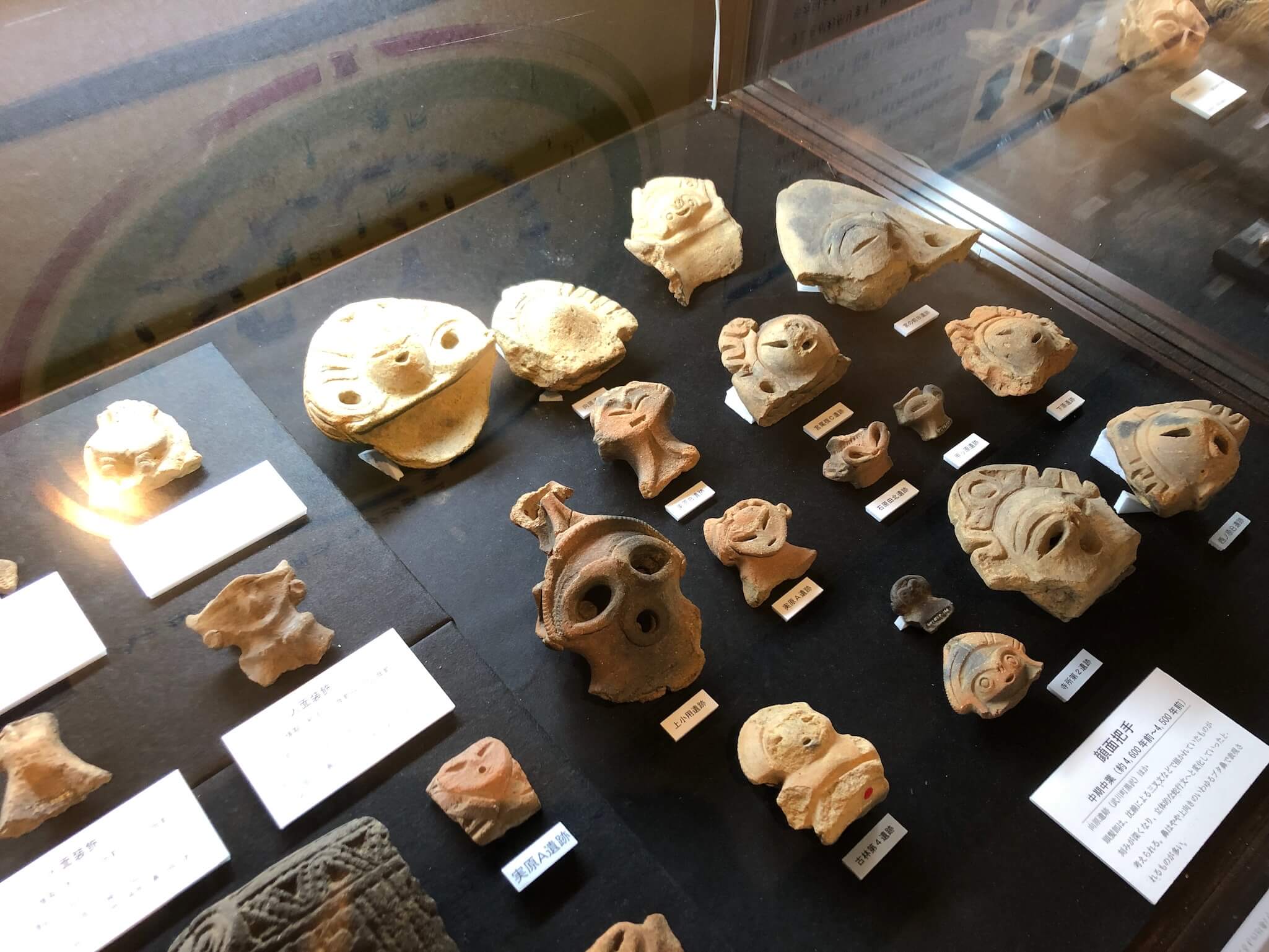 これは顔面把手付深鉢という分類の土器で、出産文土器と呼ばれるものだそうだ。この造形の深鉢の土器は初めて見たと思う。これまで見たことのない装飾である。タイトル画像に使ったのが、さまざまな顔面把手のコレクションである。実際にはこれらの把手はいずれかの深鉢に取り付けられていたのだろう。