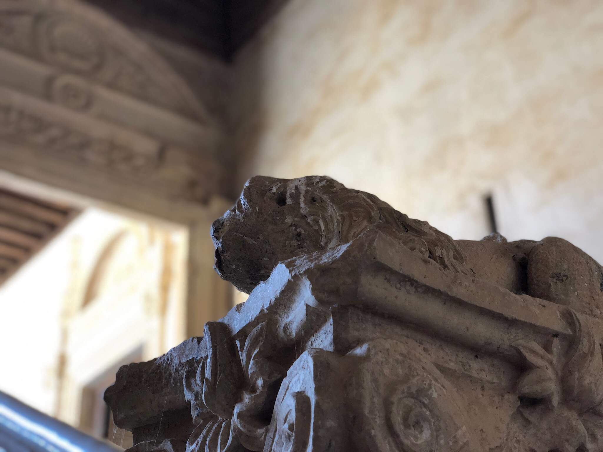 お尻から見るとこんな感じ。細部はほとんどすり減ってしまって、これの修復は難しい感じです。スペインで修復と言えば、お猿さんの絵とか、原色の彫像とかが有名ですが、ここがそんなことで有名にならないことを祈ります。