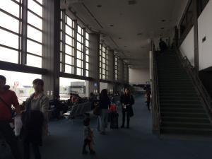 サテライトの端からだと入国審査(帰国)までは結構な距離があります。入国審査が終わるとエスカレーターを降りて荷物受取場へ進みます。ゲートを出ると到着ロビー(1階)です。バスはこの階から、電車ならエスカレーターで地階へ降ります。