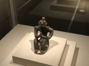 是川縄文館で旅に出ていた合掌土偶の旅先がこの東北歴史博物館である。その他にも遮光器土偶や伊勢堂岱遺跡の板状土偶なども勢揃いしていた。