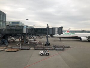 いつものファーストクラスラウンジは改修中ということで、ビジネスクラスラウンジのスカイビューで一休みです。この後の食事のことを考えたらここでお腹をいっぱいにしない方が良いだろうと思いコーラだけにしておきました。出発ゲートはタイトル画像にあるとおり112番、本来であればラウンジから一番近いゲートのはずなのですが、前述の通り代替ラウンジなので少し距離があります。