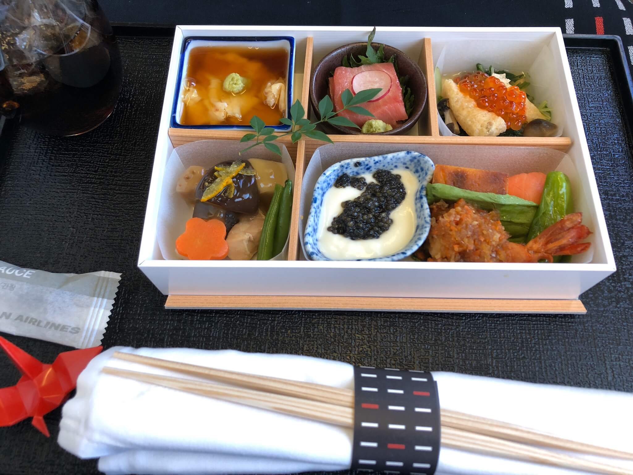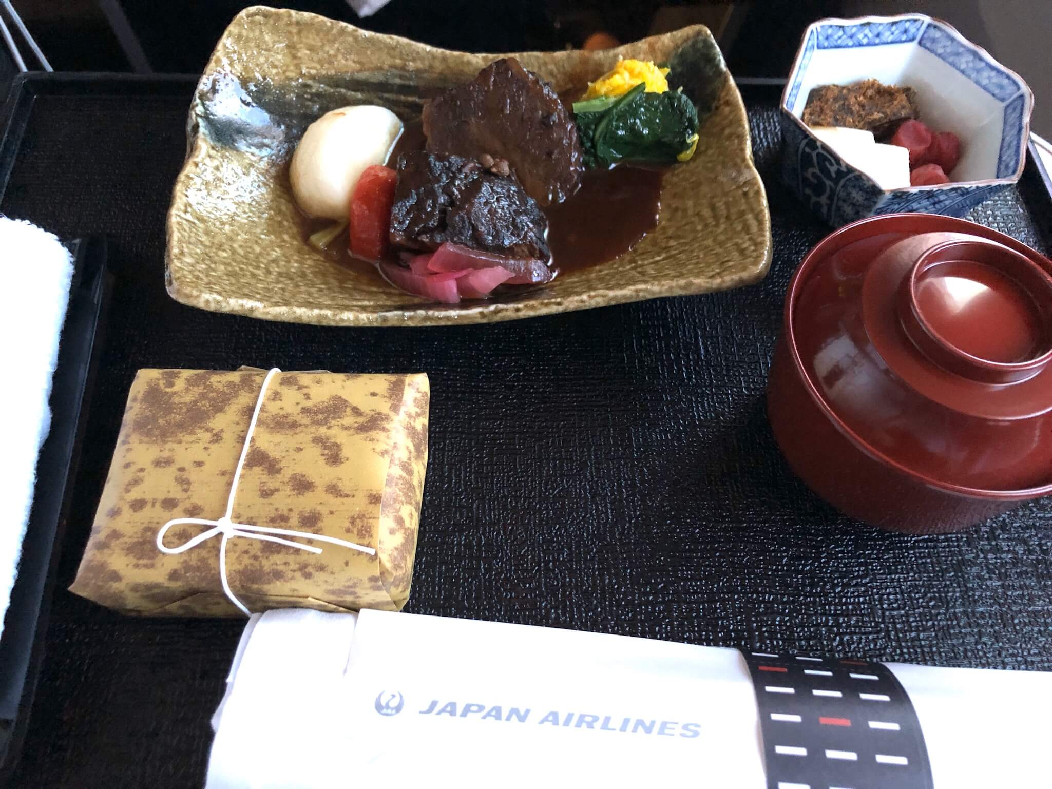 食事は例によって和食を選択。海外の航空会社に乗った後のJALの印象は、JALにはJALの良いところがあるな、、、です(笑)