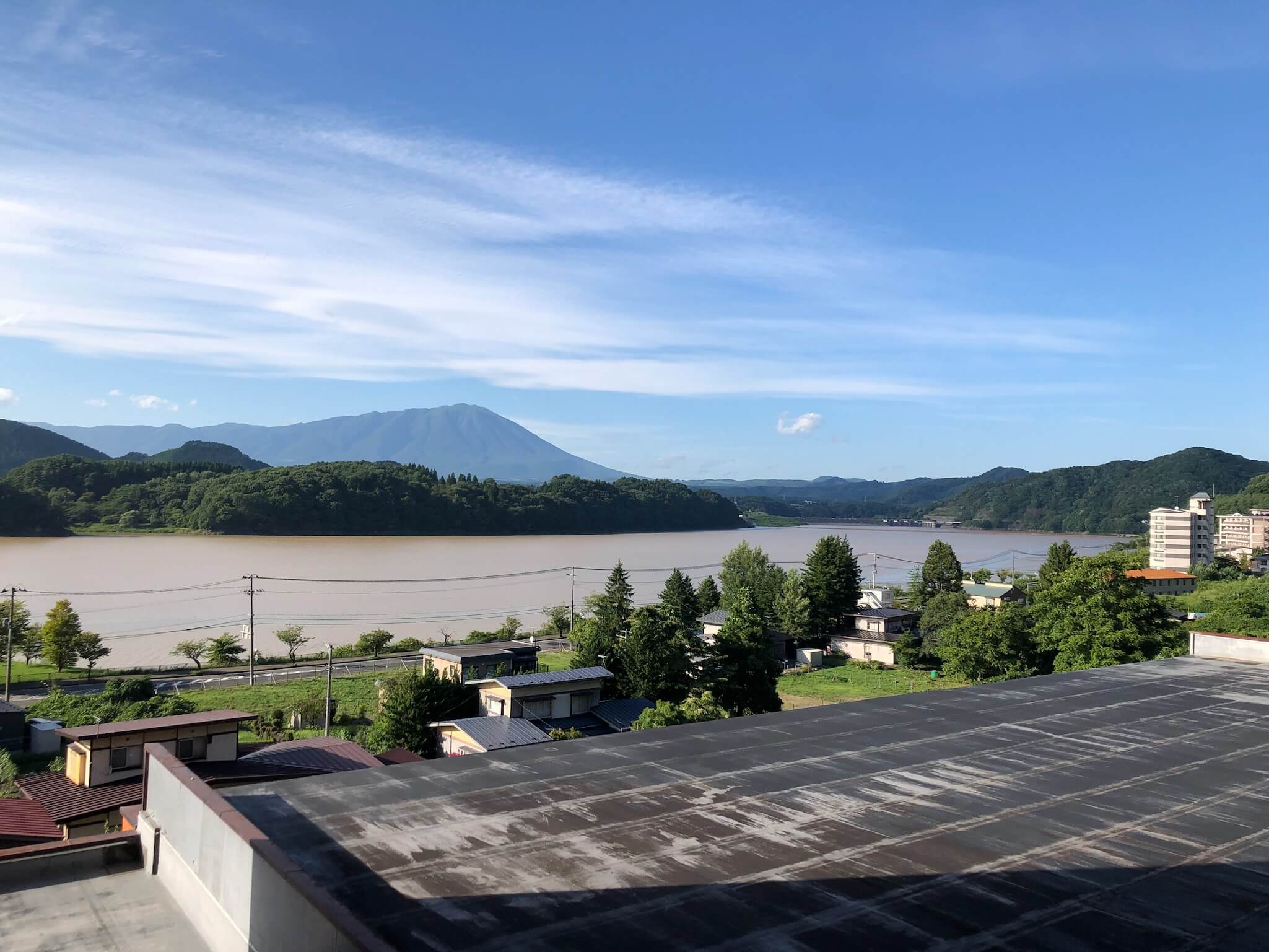 そして部屋からは御所湖と岩手山を眺めることができる。この日は大雨の翌日で御所湖の水が濁っていたのがちょっと残念ではあった。期せずして連泊となったが、最高の滞在になったと思う、ここはリピートありだな。