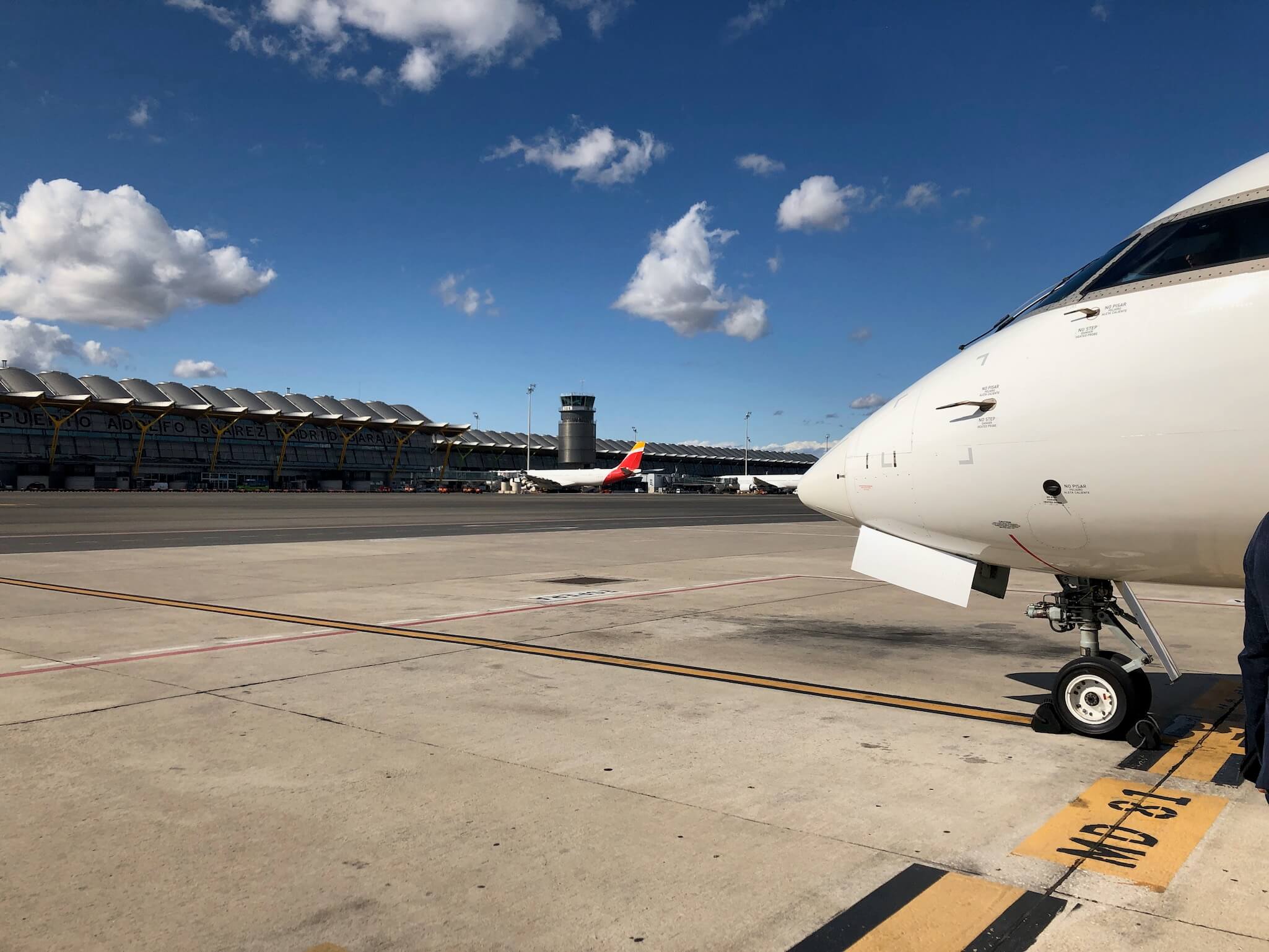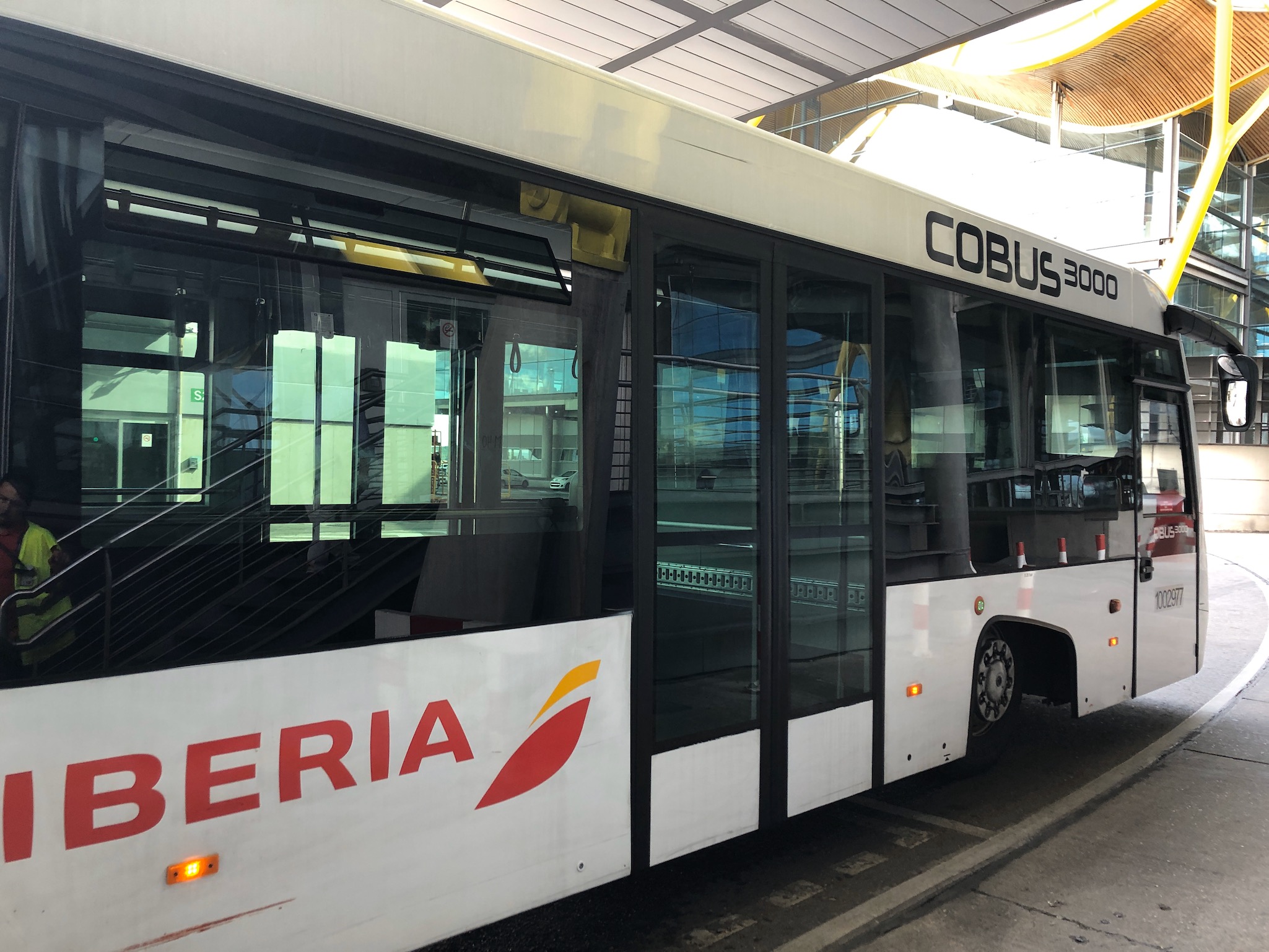 リージョナルジェットだった往路と同じく復路もリージョナルジェットなのでバス接続となります。機体構造的にはプライベートジェットの胴体を延長したもの、という感じです。