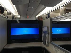 また大げさに言っていると思うでしょう? でも一人席に空席が出ないってのが不人気の証拠だと思うんですよね。サイト上でシートマップから座席を選択することが出来ますが、窓側の一人席から埋まって行きます。近距離アジア路線なのでビジネス需要よりバケーション需要(カップル)を見込んでの採用か、長距離路線と同じシートだと席数が確保出来ないからなのか、専門用語では「ヘリンボーン」と言うらしいのですが、とにかく苦手です。落ち着かないのが最大の欠点ですね。お互いに知らない同士が45度ずつ相手の方を向いて座っているって想像しただけで不快ですよね。