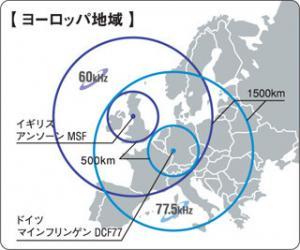 電波時計とは、正確な時刻情報をのせた長波標準電波を受信することにより、正しい時刻を表示する時計のことで、標準電波は日本国内(福島局と九州局)のほか、アメリカ、イギリス、ドイツ、中国からも送信されていて、機種によって対応地域が異なるが、どこのメーカーもだいたい以下の区分となっているようである。