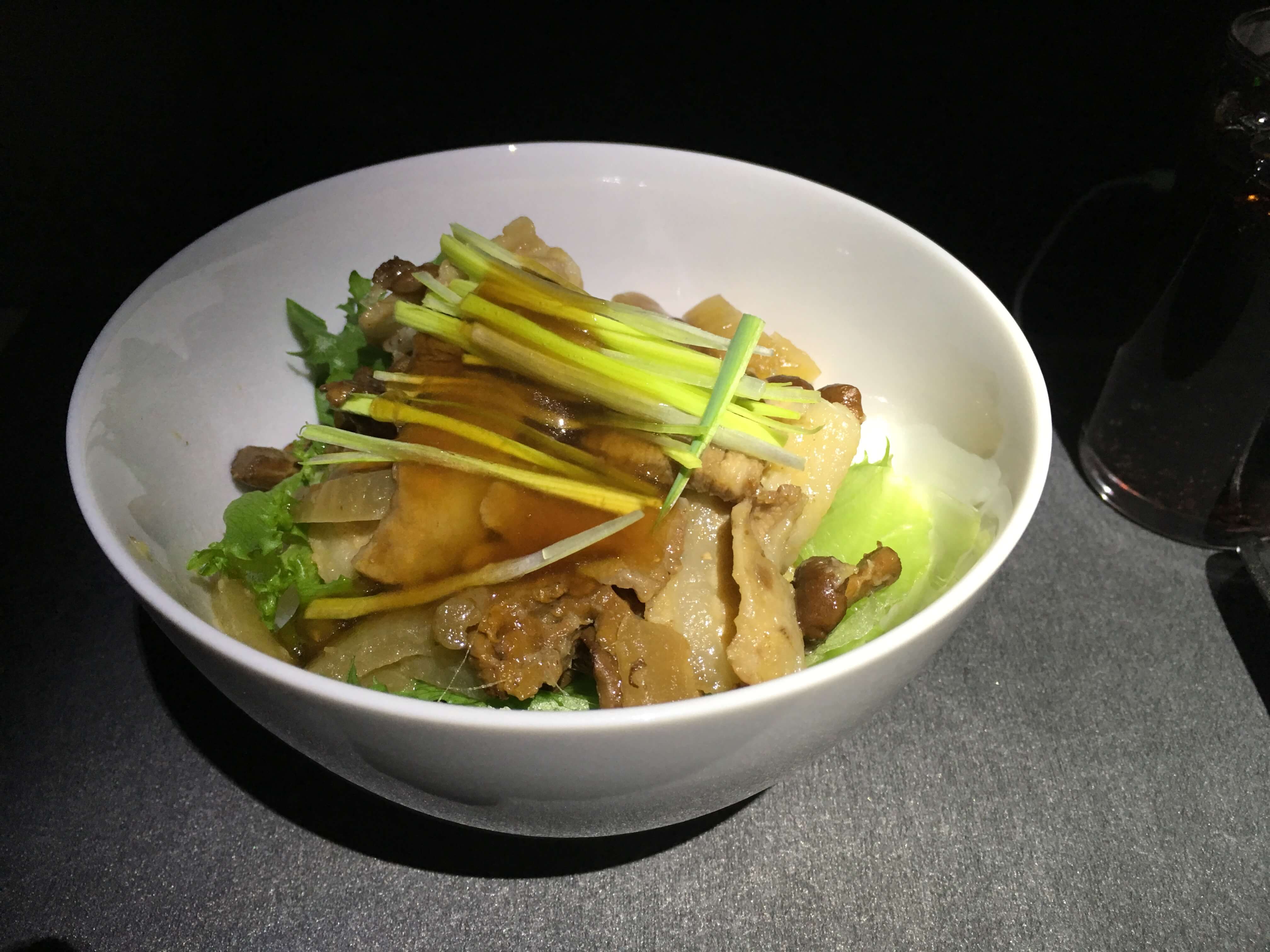 ヘルシンキ線のみに提供される「フィンラン丼」と言うのを食べてみました。メニューには「〜ポークと野菜の小どんぶり 生姜だれ〜」と書かれていました。どこへ行っても豚肉と生姜の相性は抜群ですね。小どんぶりって言うぐらいだから、到着前の朝食も食べられる量です。ご飯は改善されていていつもの美味しいご飯になっていました。