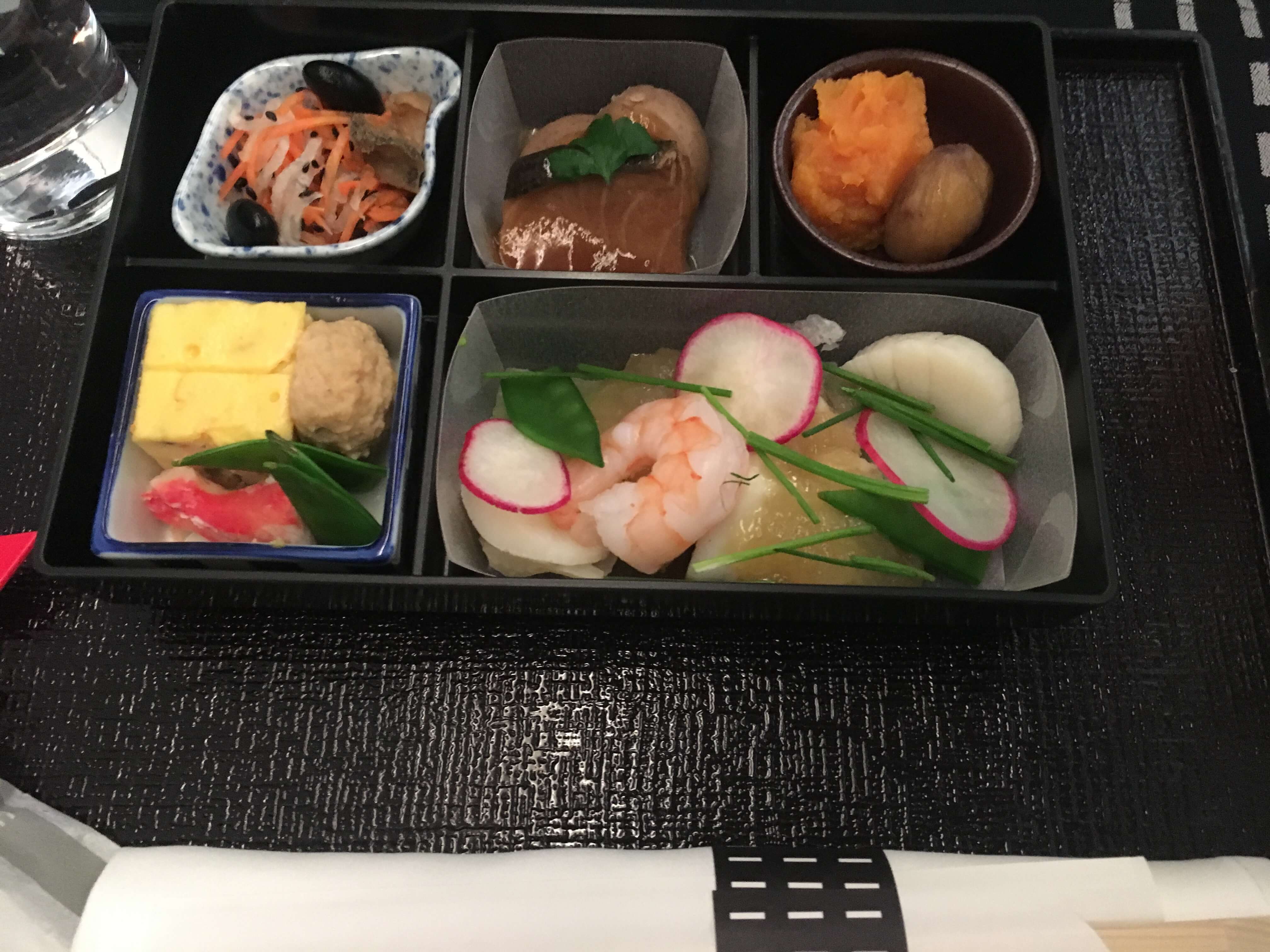食事は、往路も和食を予約しましたが、今回は復路も和食です。食材自体は欧州仕入れなので同じようなメニューでも美味しく感じるのは気のせいではないと思います。ただし今回は炊飯器の調子が悪かったのか芯の残ったご飯でした。ちょっと残念。