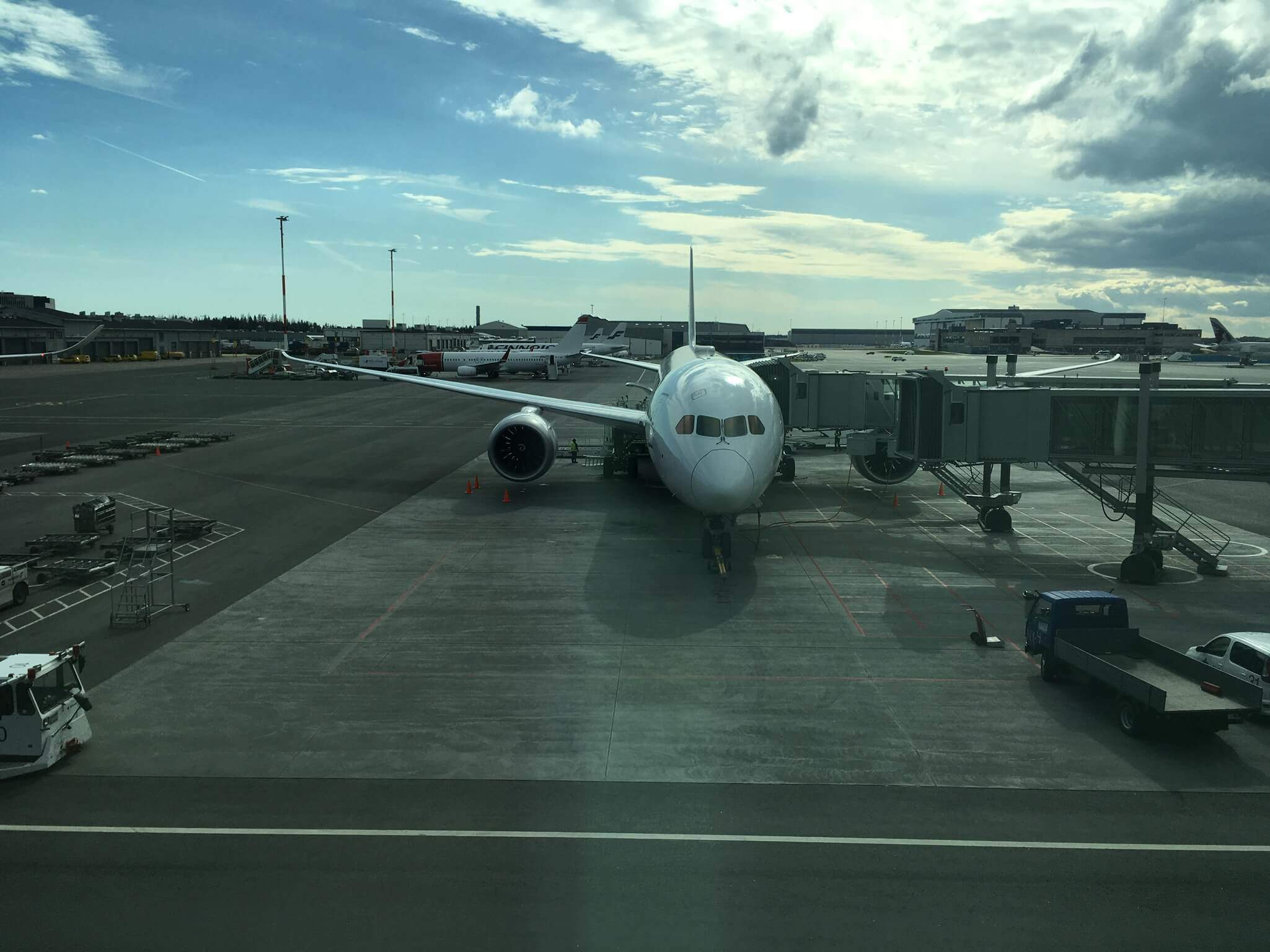 前回、沖留めバス接続の時、工事中だったターミナルが完成したのか、今回はボーディングブリッジ使用でした。しかも初めてのゲート。いきなり数字が増えました。2020年までにもっとターミナルを拡張するのだそうです。これまではコンパクトさで乗換えの便利さで売ってきたヘルシンキ ヴァンター空港ですが、これからは拡張したターミナルで接続便の豊富さも競うのかもしれません。