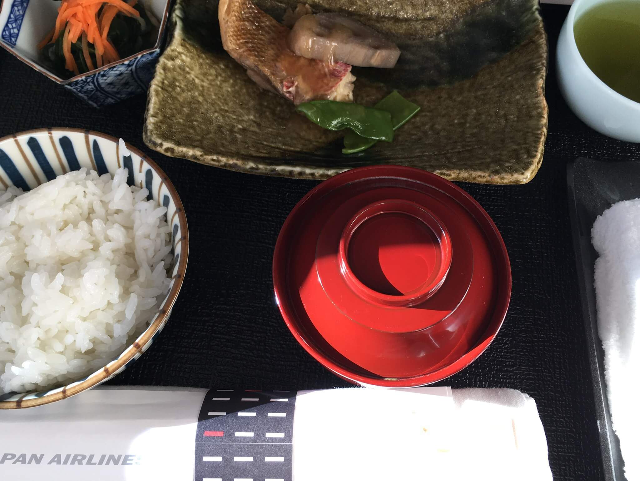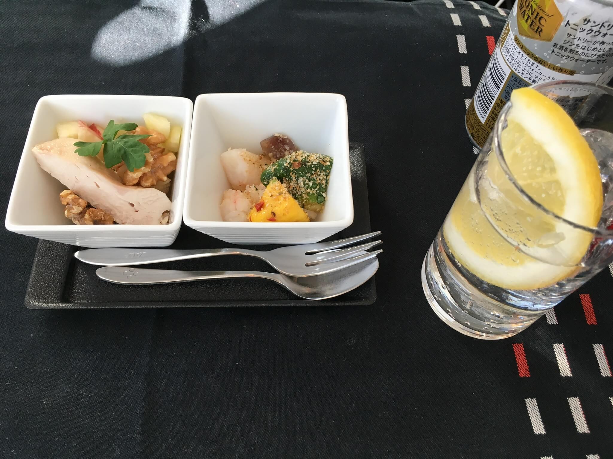 食事は定番の和食を外し、あえて「洋食」を選択。たまにはビーフもいっときます。前菜も仔牛のローストビーフで、若干「肉肉しい」感じではありますが、今回の旅ではあまりビーフを食べる機会がなかったのでOKです。
