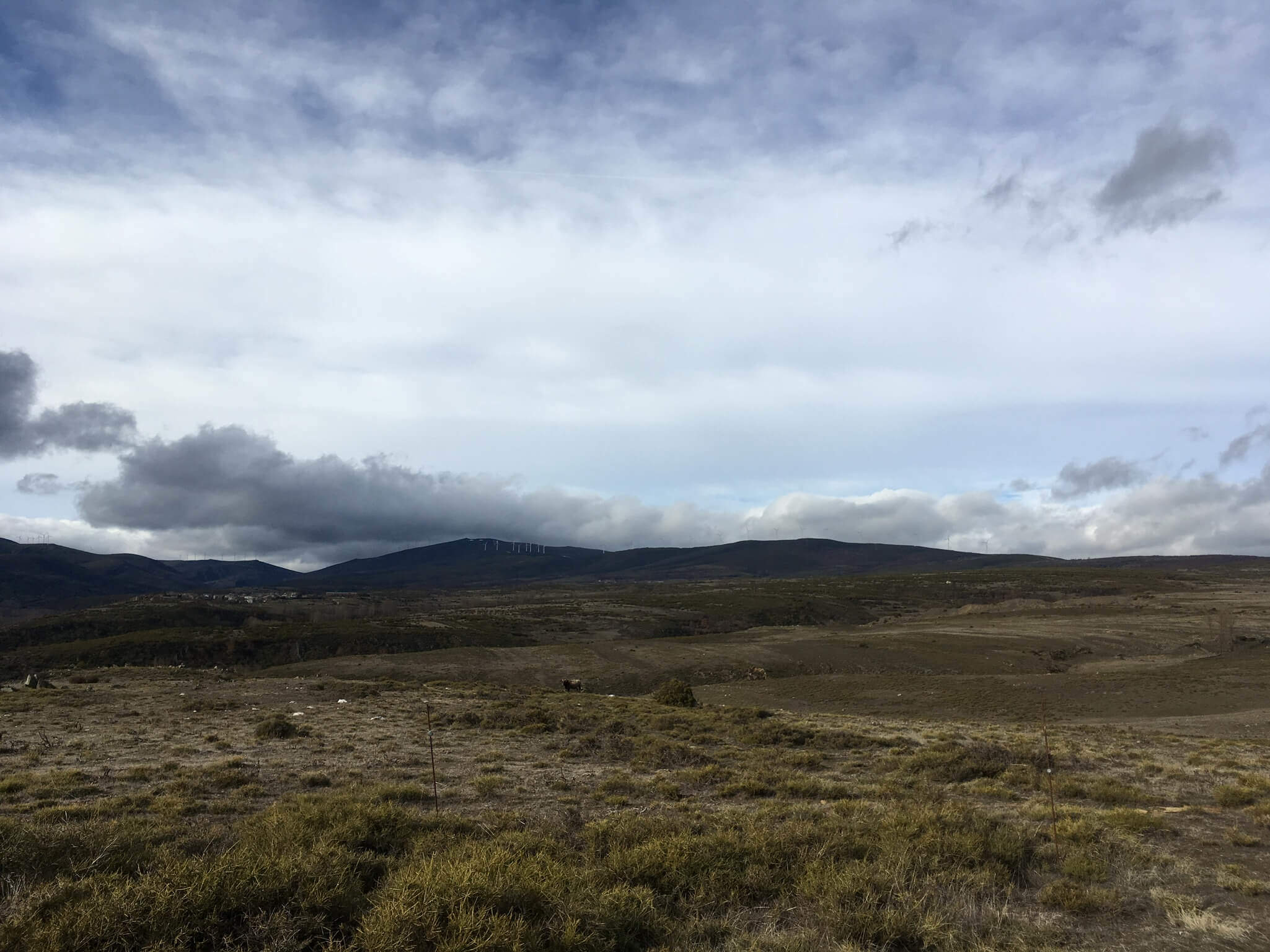 巡礼の街で有名なアストルガから30分ぐらい山を登ったところにあります。結構な山道でところどころ舗装が劣化している部分もあり、まるで乱気流に巻き込まれた飛行機のような乗り心地でした。到着した山は見渡す限りの荒地って感じです。